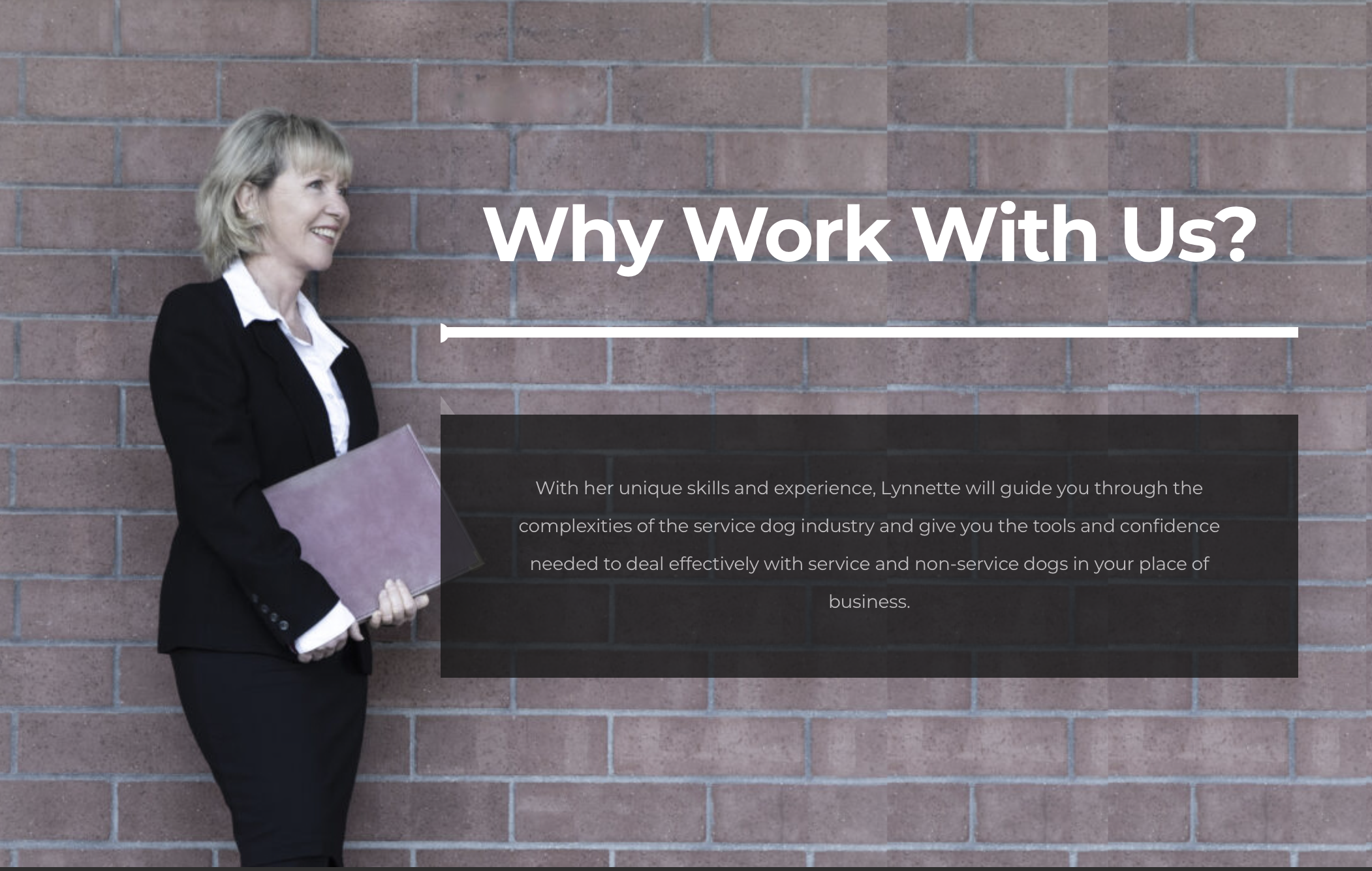 Lynnette Berker is the founder of Assistance Dogs Consulting and has been involved in the service dog industry since 1994. Originally a puppy raiser for Guide Dogs of the Desert, she advanced to become a field representative for PAWS With a Cause ®, one of the largest and most prestigious service dog organizations in the country.